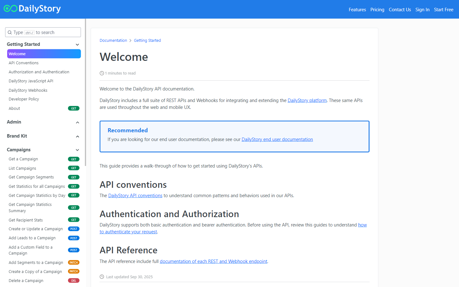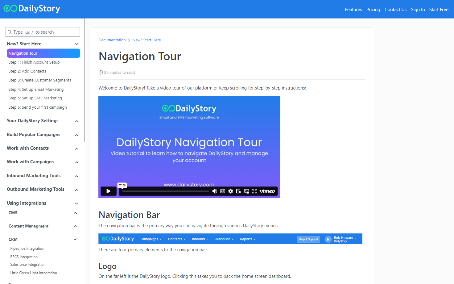 DailyStory is an Email and SMS marketing automation platform. Check out their developer documentation built on HelpGuides: