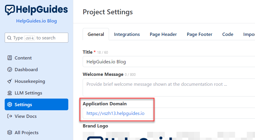 Create a Cloudflare worker to manage reverse proxy requests from your domain into your helpguides.io project. You will need your Application Domain. The script below is used to rewrite requests that have a /blog/.